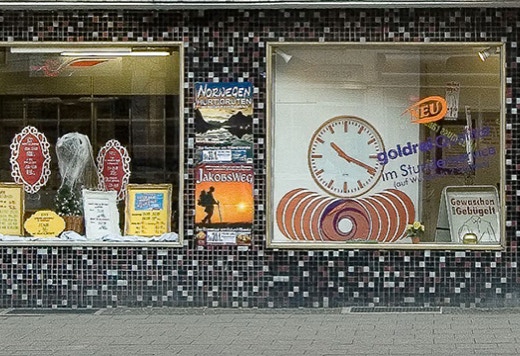 Reinhard Zielonka präsentiert uns hier nun keine Sammlung der bedeutendsten Architekturschöpfungen, sondern einen Überblick über die Vielgestaltigkeit des alltäglichen Bauens, das bis zum sekundären Befliesen von Gründerzeithäusern reichen kann. Es geht ihm nicht um das Schöne oder Einmalige, weder um sentimentales Pathos noch um verklärende Erinnerung, sondern um das systematische Erfassen von Typen und Formen nach einer durchgängigen Methode: serielle Reihung gleicher Motive, in deren Nebeneinander erst die konstruktiven und formalen Grundzüge der Bauten ablesbar werden, rigorose Wiederholung jenseits behäbiger Postkartenklischees von Stadt, nüchterne Kameraführung und standardisierte, meist frontal und Format füllend angeordnete Ansichten, möglichst ohne Perspektive und Beiwerk, vor allem ohne Menschen. Seine Fotografien erstellen eine Typologie der spezifischen Fassadengestaltung und signifikanten Ladenzeilen. Sie kommen deshalb ohne jede Inszenierung, Schönung und Überhöhung des Erlebten aus; es sind schon rein technisch einfache Fotos, digital fotografiert, in den Abzügen kaum nachbearbeitet und nicht manipuliert. Somit ist jede ausgestellte Fotografie authentischer Beleg seines Davorstehens vor den Gebäuden, denn wir sollen sehen, was der Fotograf gesehen hat. Wir treffen hier auf eine konzeptuelle dokumentarische Fotografie, die zwar bewusst auf Wertungen verzichtet, aber doch nachdrücklich auf die gesellschaftlichen Zusammenhänge hinweist.